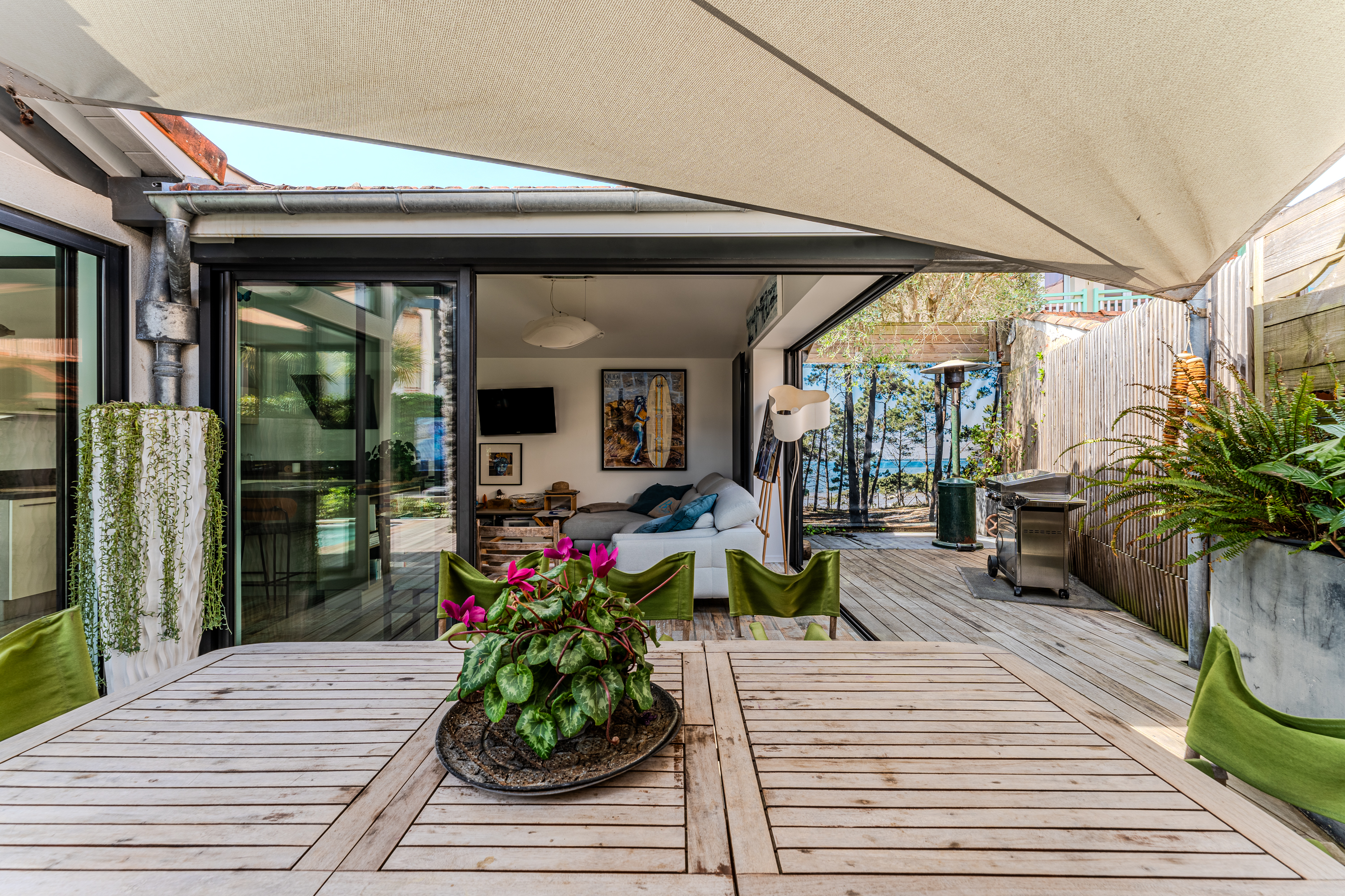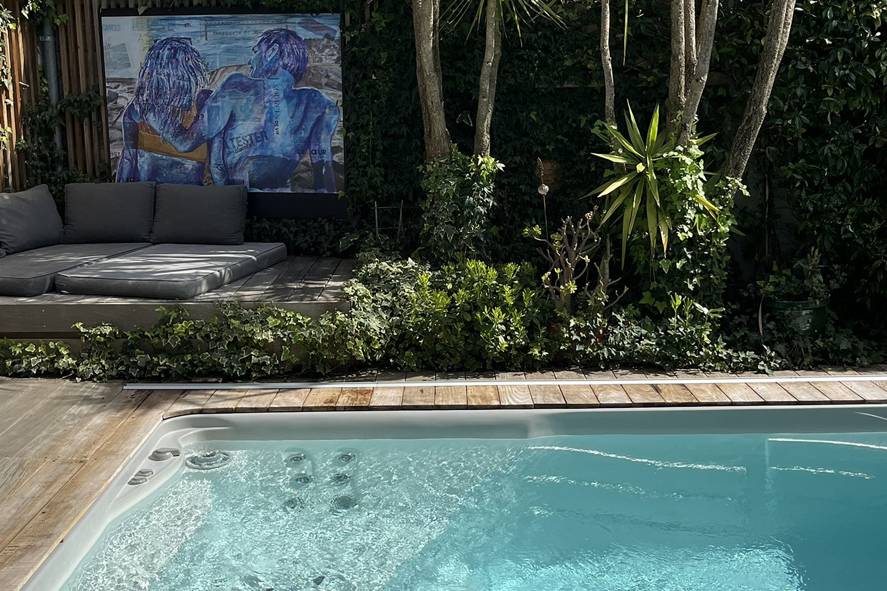 Détente Haut de Gamme : Un vaste séjour baigné de lumière ouvert sur une terrasse et une mini-piscine chauffée pour vos moments de farniente.