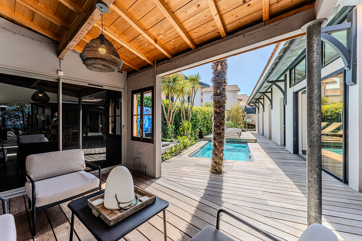 Cette mini‑piscine chauffée fait de la Villa Sanson une villa rare à Arcachon, idéale pour un séjour bien‑être en toute intimité.