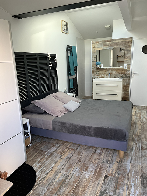 Pour un moment de relaxation à tout moment de la journée, la Villa Sanson met à votre disposition une mini‑piscine chauffée privative. C’est l’endroit parfait pour se détendre après une journée à la plage, une balade en forêt ou une excursion sur le Bassin.