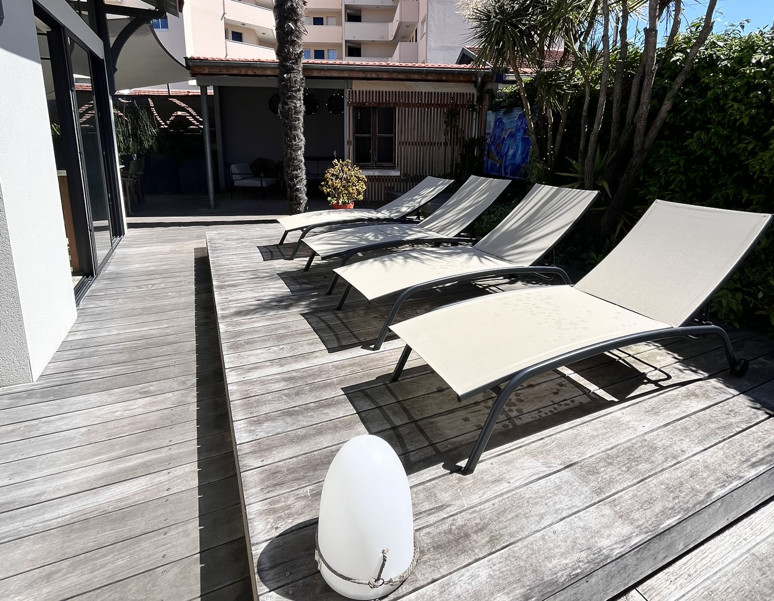 - des terrasses extérieures pour les repas en plein air sous la voile d'ombrage,